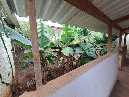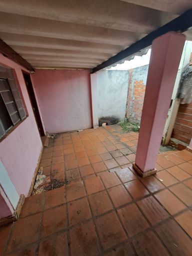 Imóvel com dois dormitórios, sala, cozinha, banheiro, área de serviço e garagem.