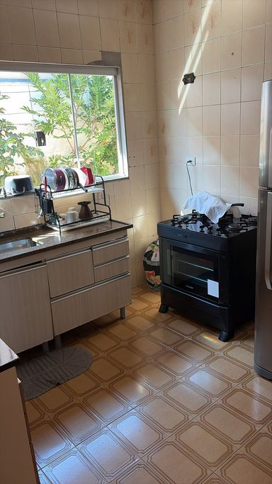 Imóvel com dois dormitórios, dois banheiros, sala, cozinha, área de serviço e garagem.