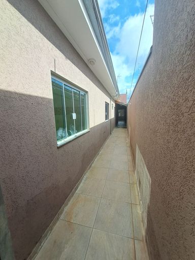 Casa com dois quartos, sala, cozinha, 01 banheiro social interno e 01 banheiro social externo, garagem para dois carros.