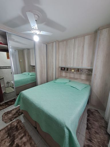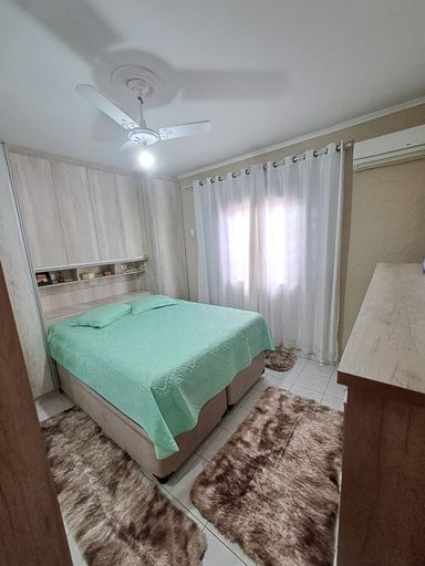 Imóvel amplo com três dormitórios sendo uma suíte com planejados, sala, cozinha, banheiro social, área gourmet com churrasqueira, área de serviço e garagem.